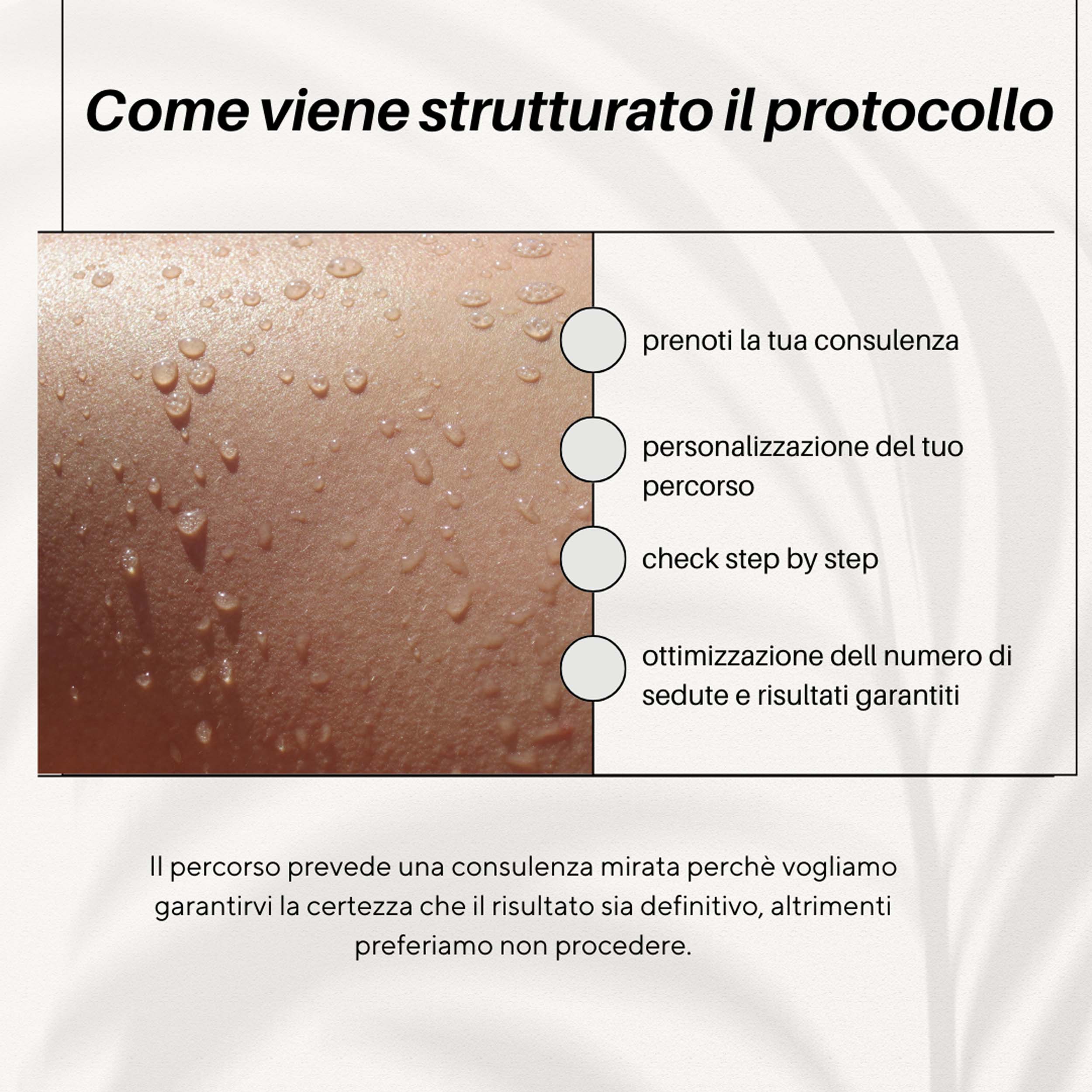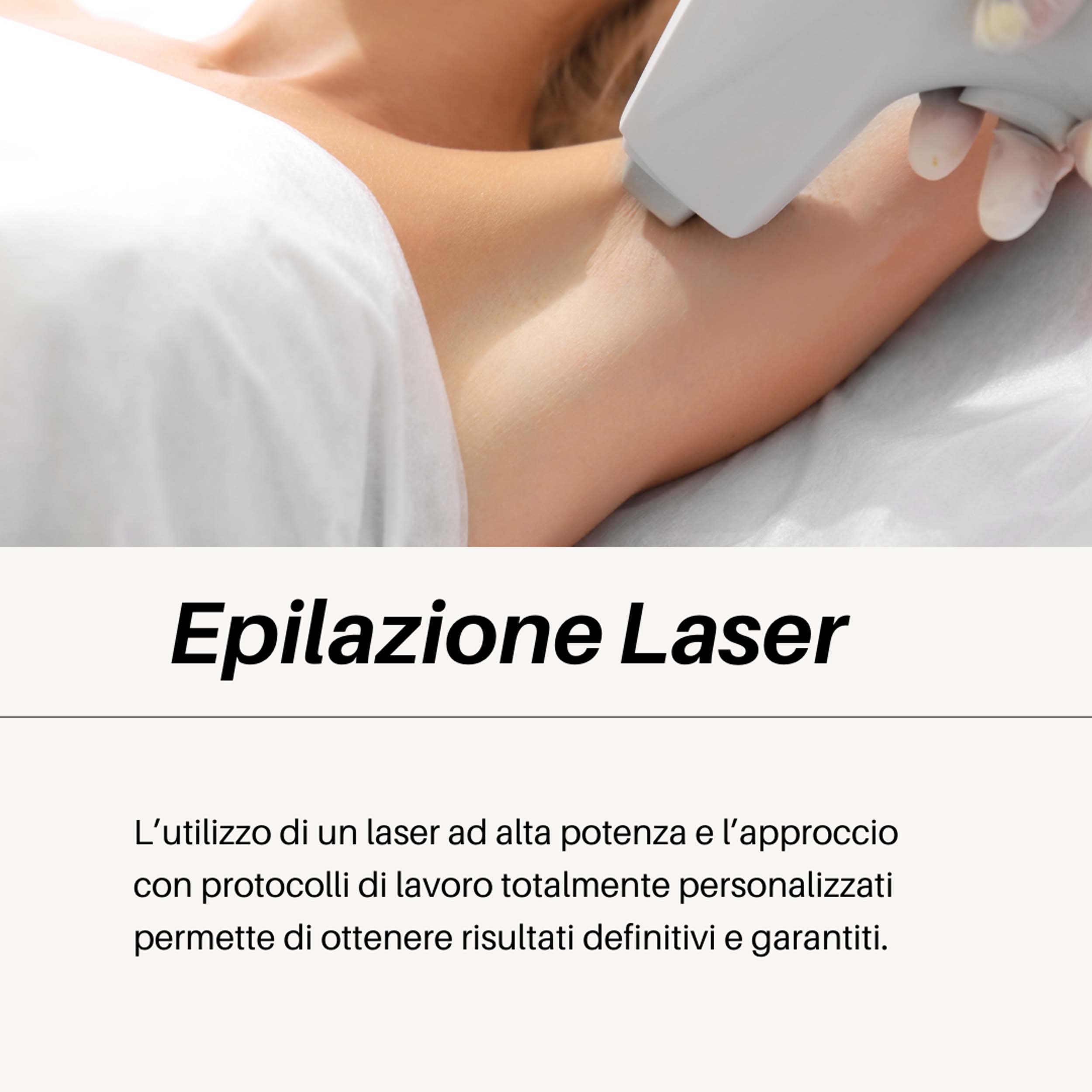l trattamento di Face&Body Hair Laser, permette di eliminare in modo definitivo e rispettoso, i peli di viso e corpo, attraverso LightSheer Lumenis, un laser ad alta potenza. La sua efficacia, permette di dimezzare il numero di sedute ottimizzando i tempi di trattamento. Le sedute non vengono fissate a cadenze predefinite, ma vengono distribuite, in base alla crescita e ai risultati personali della cliente, così da ottimizzare al meglio. I risultati sono garantiti fin dalla prima seduta. Non si effettuano pacchetti ma solo trattamenti personalizzati sulla singola seduta. Protocollo strutturato previa consulenza personalizzata. Inoltre, grazie ad una tecnica innovativa di ultima generazione, è possibile lavorare su zone che normalmente il laser non può trattare come: l’antiestetica peluria, peli bianchi e biondi, sopracciglia, peli sui tattoo, peli sui nei e peli danneggiati da trattamenti laser errati