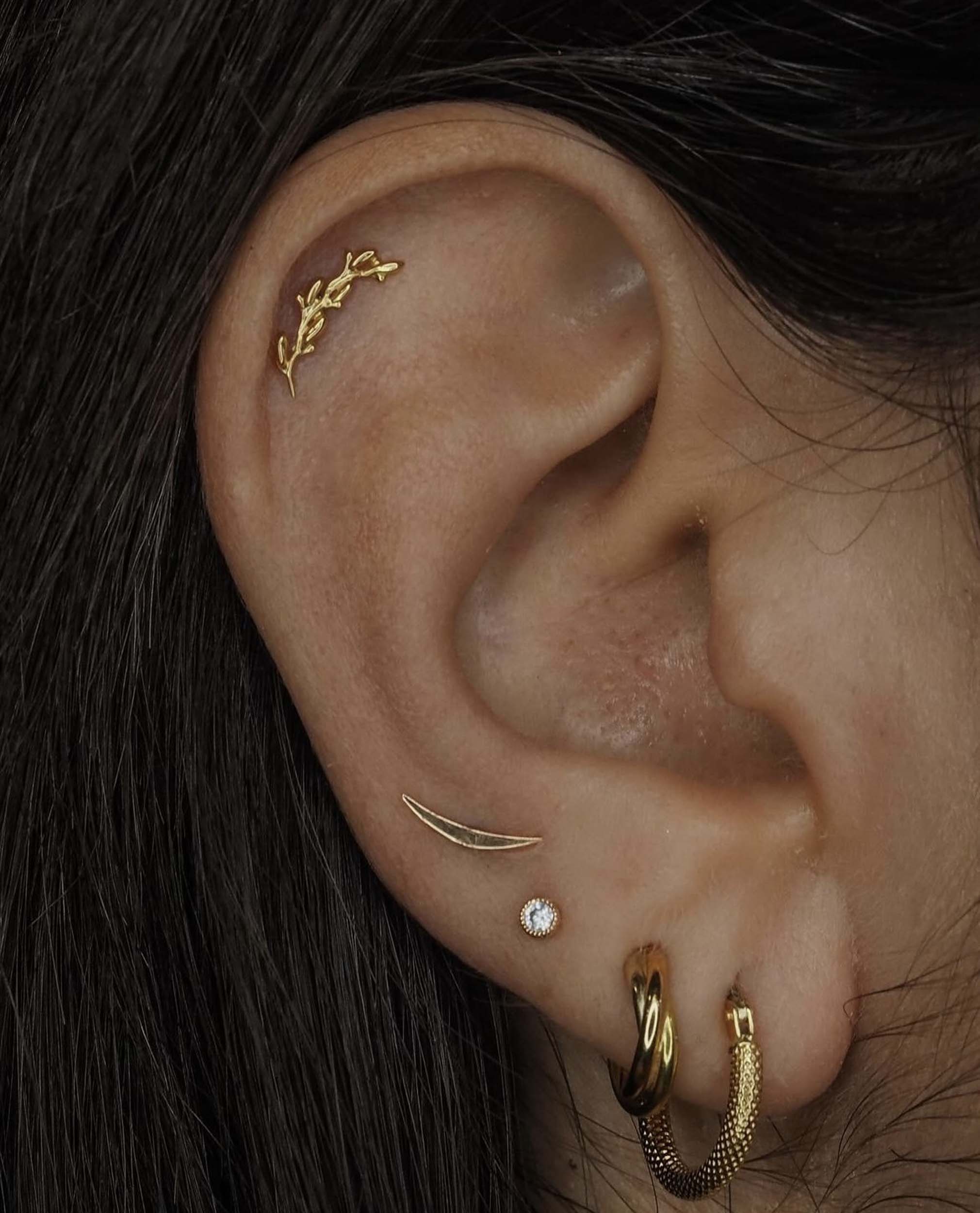 É la combinazione di più gioielli nei piercing dell’ orecchio, con fori già preesistenti. Pensiamo ad un Ear Curation come alla scelta dell’outfit perfetto, una composizione creata a regola d’arte attraverso la progettazione. Arte e professionalità si incontrano per valorizzare l’unicità della persona, creando armonia. Ogni pezzo deve sposarsi con gli altri, esaltando l’anatomia e lo stile con il massimo del comfort. Valentina è una professionista che da 15 anni si dedica alla cura dello stile delle orecchie, scegliendo i modelli dei brand più esclusivi, veri e propri esempi di arte orafa.